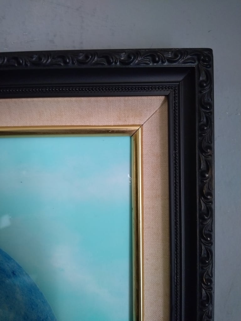 The frame is a vintage, gold leaf frame from Lebanon and was made in the 1960s.