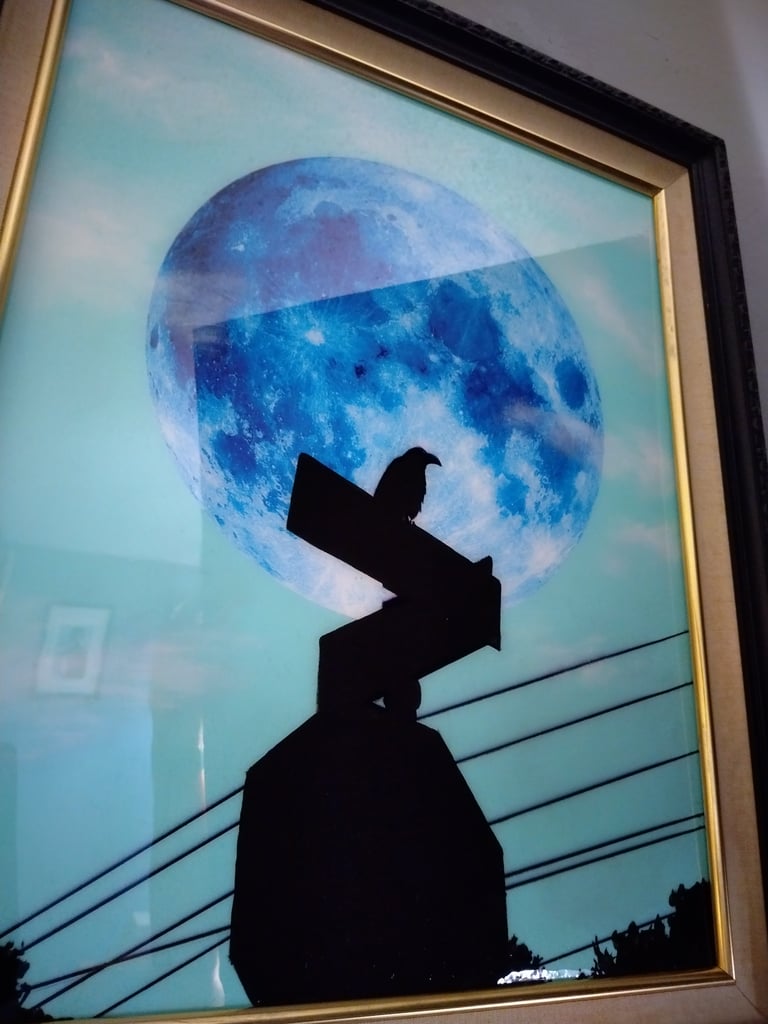 Measuring 16x20", the acrylic/oil painting is coated with resin for a glass-like surface.