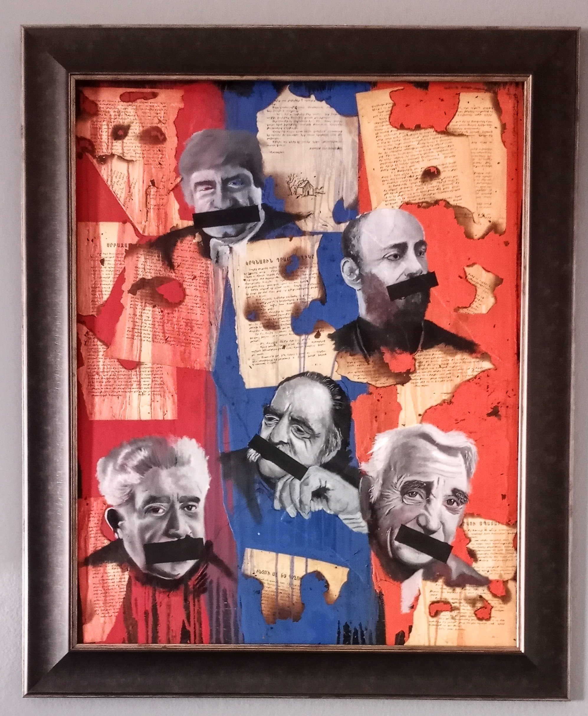 24x30" Oil/Mixed Media on wood, resin-coated, framed. Includes pages from authentic Armenian short stories from the 1960's. Includes certificate of authenticity.