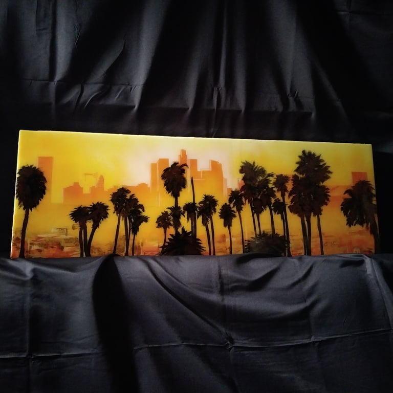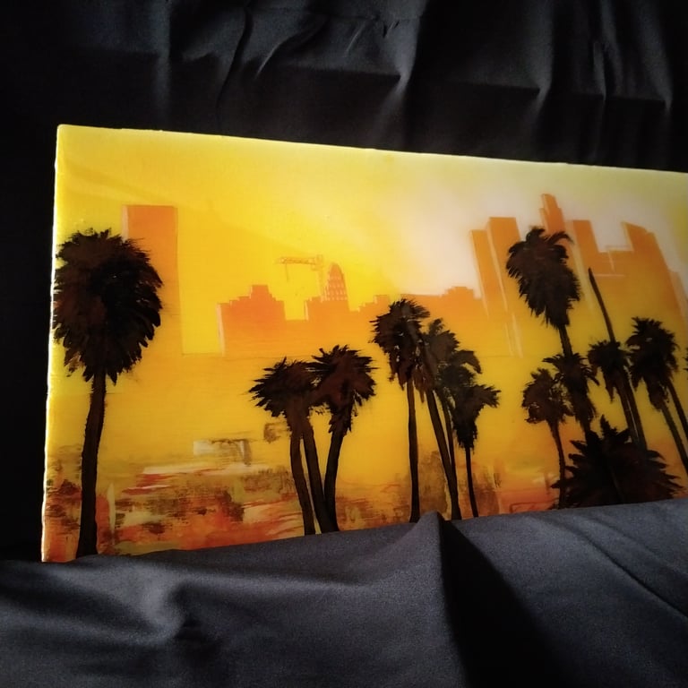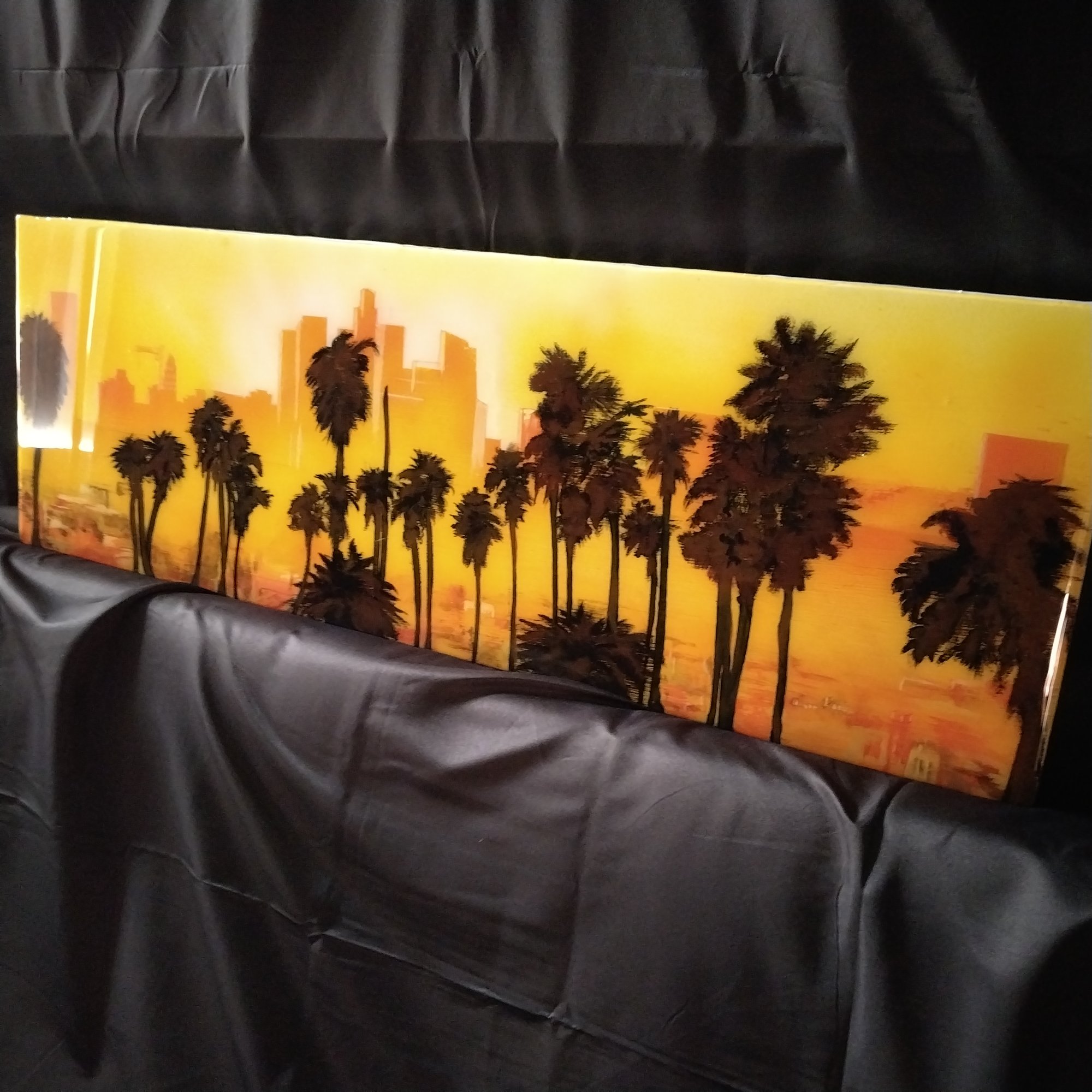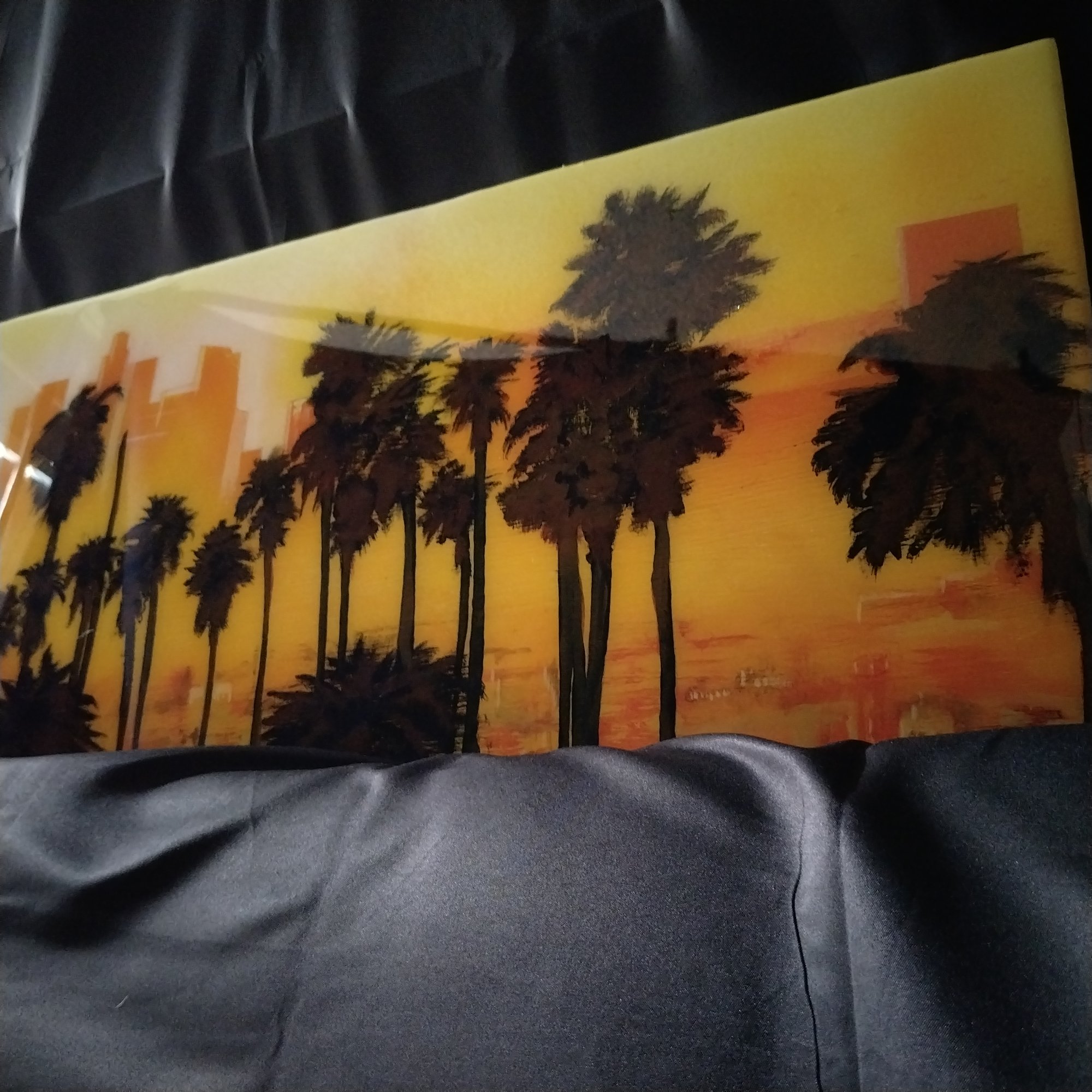 12x36" acrylic on wood. Coated in resin for a glass-like surface. Hangs via sawtooth hardware. Includes certificate of authenticity.
